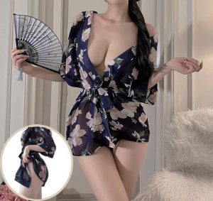 浴衣 セクシー コスプレ 和服 花魁 着物 ランジェリー 衣装 女性 和風 和装 コスチューム 大和撫子 パジャマ ガウン+リボンベルト+Tパックの3点セット 1006